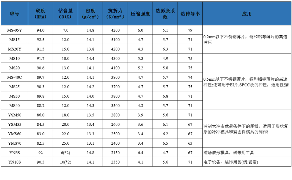 三.硬質(zhì)合金板材的牌號(hào)介紹