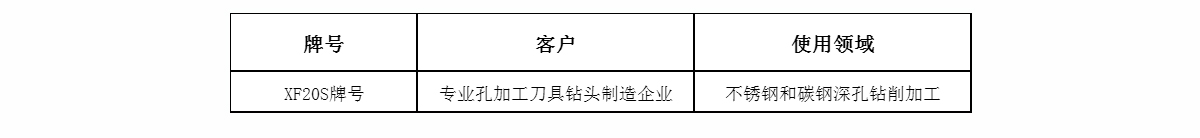 XF20S牌號采用粘結(jié)相強(qiáng)化技術(shù),優(yōu)選先進(jìn)的優(yōu)質(zhì)超細(xì)WC,專門針對不銹鋼和碳鋼切削鉆削而設(shè)計(jì)的牌號,與傳統(tǒng)的YG系列材料相比,具有卓越的耐磨性和抗沖擊韌性,能解決鉆頭在使用過程中不耐磨和斷裂的現(xiàn)象,大大提高鉆頭的使用壽命。非常適合制作鉆削孔徑12到50毫米深孔的專業(yè)孔加工刀具鉆頭制造企業(yè)。